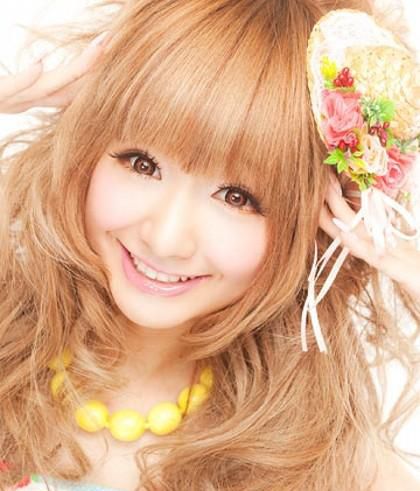 运用卡哇伊的齐刘海搭配田园感十足的花柄头饰,展现100%夏日甜心的热情活力,同时散漫凌乱的发丝很好的修饰了圆圆的苹果脸。