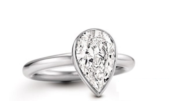 梨形的钻石分外惹人爱,在优雅的铂金之烘托下,显得颇为别致。绕于钻石一周的铂金底座给予钻石此生不变的保护。