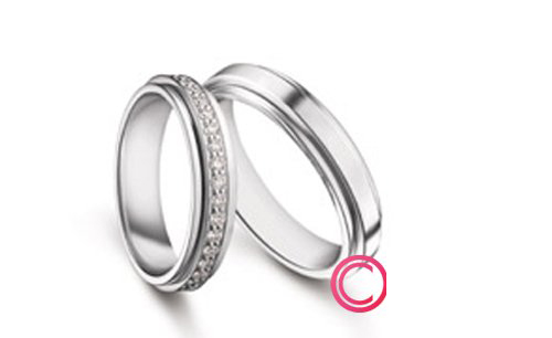 铂金底座镶嵌华贵钻石,构成柔美线条和优雅造型,如同温婉的爱情故事,两个弧度默契地密合,见证人生中最幸福的时刻,从此水乳交融。