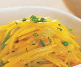 1、将南瓜洗净,去皮,切开去瓤,瓜肉切成丝。