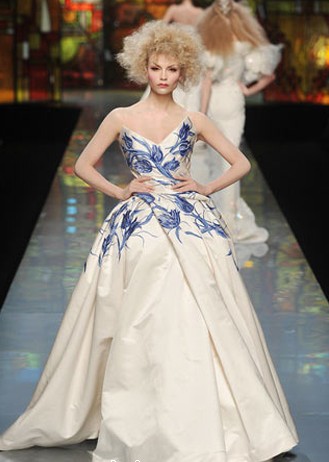 Dior给了国人一个大大的惊喜———把青花瓷概念运用到高级定制礼服上。一时间,青花瓷图案成为最热门的时尚看点。