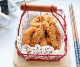 9、炸至鸡柳成金黄色,捞出控油即可。