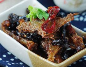 3、风干鱼仔的同时,将豆豉放入碗中,倒入三花酒浸泡置软