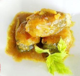 1、将马鲛鱼洗净切成寸断,用盐、生粉、料酒和少许的咖喱粉搅拌均匀腌制半小时