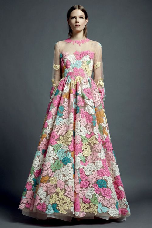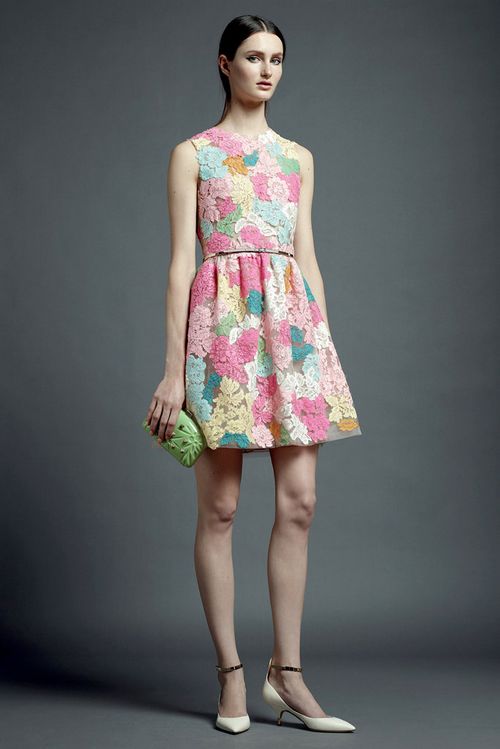 彩色的蕾丝花朵,无袖的简洁小礼服,充满夏日朝气。
