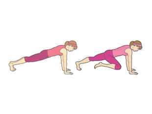 五、登山者。1.起始为俯卧撑姿势,双手撑地,位于双肩正下方,双腿向后伸展。身体绷直。2.右腿弯曲,抬向胸口(登山姿势),然后伸直,回到起始位置。换左腿重复同样动作。动作尽量缓慢,坚持60秒。注意保持髋部和臀部放低。