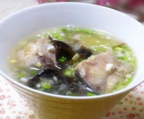 8、小火20分钟后放黑木耳再次煮开,出锅,盛入汤碗中,面上撒蒜叶。