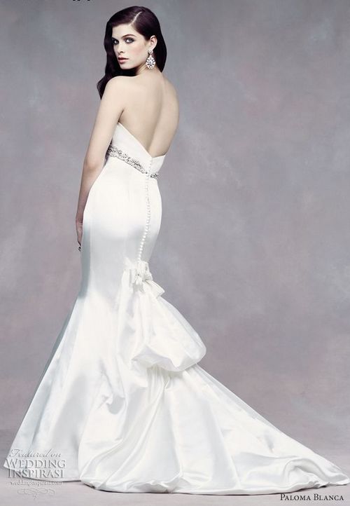 性感露背鱼尾婚纱,华丽缎面贵族范儿十足。