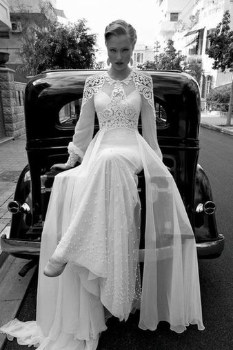 著名的婚纱设计师Galia Lahav在2012春夏之际推出了一系列好莱坞复古唯美婚纱,本系列婚纱不仅仅具有好莱坞式的复古气质,同时也具有现代时尚的精髓理念。大片采用黑白色调的表现手法,无论是在室内或是室外,都带给我们恬淡宁静的幸福感。简单的剪裁轮廓,嵌入珍珠、薄纱、蕾丝等元素,华美感与奢侈感完美展现。