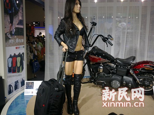 在专业摄像器材馆,带着长枪短炮来领行情的观众不少。展商们热情推销,有的还引入了车展的展示形式。一个卖相机包的展台,邀请多位美女模特助阵,让她们携带多个款式的相机包展示,展台前镁光灯闪成一片。