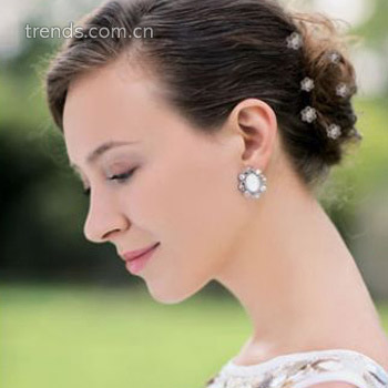 无论婚礼是在室内还是户外举行,新娘都希望能够做最迷人的公主,活泼清爽的马尾辫,凸显出新娘纯然清雅的质地,如果担心式样略显清谈了一点,配上一顶精巧雅致的头冠,就会让整个发型设计变得生动起来。