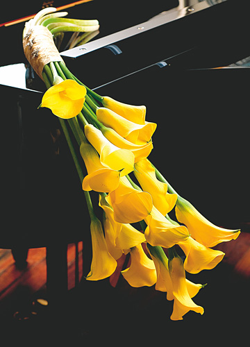 马蹄莲在当代被应用到婚礼中来,最初是在地中海沿岸以及南非等国家,人们用它来编织新娘手中的花束,当身着抹胸婚纱的新娘将花束轻揽在胸前,长长的花茎所勾勒出的优雅弧线,与花朵映衬香肩的新娘相得益彰。仔细想来,很少有人将马蹄莲大量用在婚礼花艺设计中,或许一是因为马蹄莲的根茎过于柔软,难以造型。另一原因则是马蹄莲本身所散发出的孤傲气质,很难与其他花卉相搭配。但她的清丽脱俗,实在难以让人抗拒她的魅力。因此,我尝试使用马蹄莲来做婚礼整体设计,在不断的努力下,终于成功地使用大量马蹄莲打造了一场“烟花巴洛克”婚礼,马蹄莲的“佛焰苞”因形似佛主座前的烛台而得名,外形恰似燃烧的火焰,由她独特的外观与绚烂的色彩来模拟烟花绽放的情境最是恰当不过。