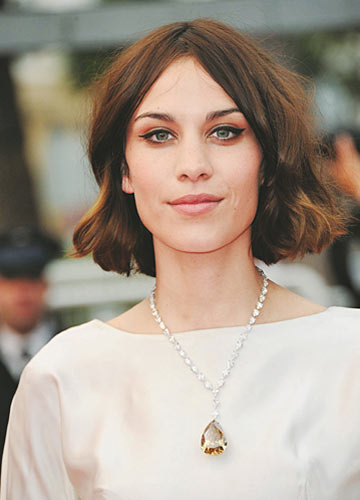 薄纱褶皱礼服,宛若女神,搭配大Piece 的彩宝项链及耳环,镜头前的回眸一笑最为亮眼。