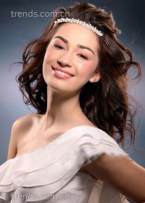 这款发型线条简单,却很有质感,厚实轮廓和发尾大弯度都使它显得与众不同,律动感十足的轻盈发束,搭配晶莹的水晶发饰能让五官更加靓丽,为新娘增添了迷人的优雅气质。
