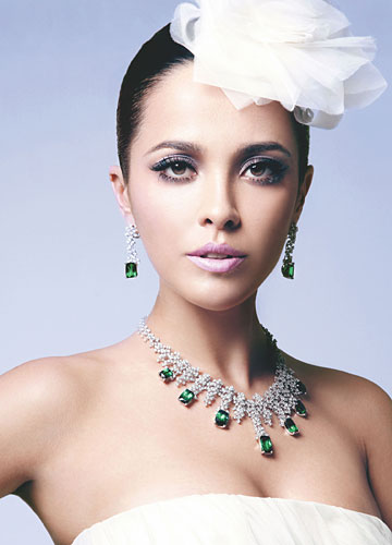 明亮的眼神加上傲人的姿态,配上闪亮的绿碧玺系列首饰,足以在酒会上抹杀菲林、惊艳四座。