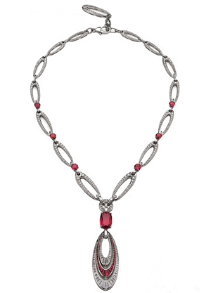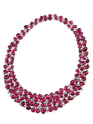 结构红色:红宝石切割得有棱有角,十分合拍地镶嵌在线条流畅的设计作品中,浓郁大气。