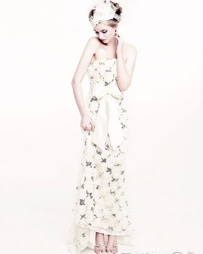 选用蕾丝花朵装饰的头饰取代皇冠,透露出新娘的娇羞和甜蜜。蓬蓬纱裙身上同样精致细腻的小花洋溢着幸福的表情。