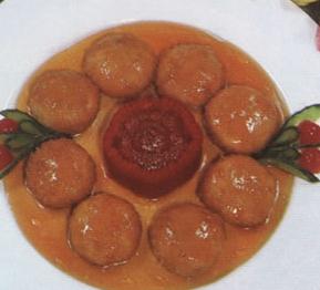 3) 起锅放油投入荸荠饼坯,炸至金黄色捞出码盘按扁;