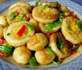 8.倒入炸好的鸡蛋块,轻轻翻炒。