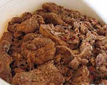 自制渣肉粉 将优质大米在小火的铁锅中炒熟,致香气扑鼻、米粒金黄时出锅,冷却备用;再将冷却后的炒米,通过家庭电动碾磨机加工成渣肉粉,备用。需要注意的是:自制的渣肉粉,一定不能碾磨得过细,米粉颗粒要稍微粗一些,却又不能太粗,否则都会影响它的口感。