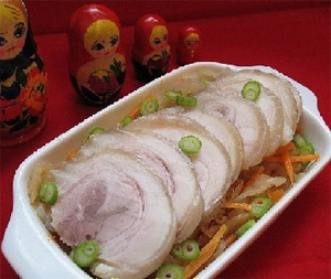 [原料/调料]熟白肘肉250克,黄瓜(或莴苣)100克,酱油35克,醋25克,芝麻油5克
