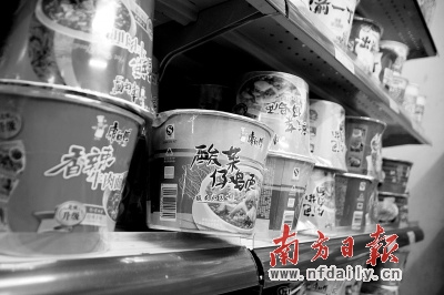 在超市货架上,各种品牌的方便面琳琅满目,记者仔细查看了部分品牌方便面的外包装,上面的数字着实令人大吃一惊:红烧牛肉面的氯化钠(盐)含量,基本在2000毫克(2克)左右,一包酸菜方便面的氯化钠含量通常超过3000毫克。