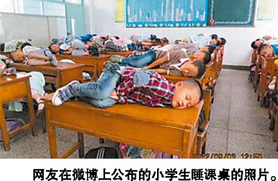 网曝小学生躺在课桌上午睡 校方称家长认可(图)