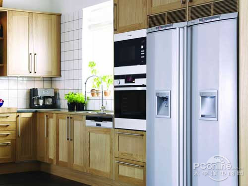 全下拉门以嵌入式微波炉应用为主,少部分应用在台式机上。嵌入式下拉门属于2000年以后的高端化产品,主要针对部分的高收入和拥有较大厨房空间的客户(如下格兰仕嵌入式微波炉效果图),嵌在橱柜内,家居融合度极高,尊贵典雅,其对家居的附加值和美化度极高,像格兰仕的该类微波炉还具有独创的下拉储物屉,能保证已完成菜品的保温,与独立式的全下拉微波炉一样,平台化操作方便,箱体容量大,拉门均采用加厚不锈钢门板,承重能力良好。由于采用的是全下拉,不存在斜度,取物时可以平拿平放或从近端抽出,方便且不易烫伤。这类产品对家居的点缀和美化附加值很高,往往是厨房中的亮点,在整体厨房流行的今天备受瞩目。