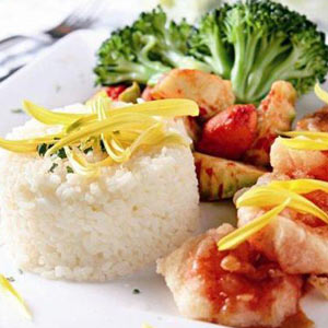 新鲜的脆炸海中虾,配合甜甜的菊花蜜和肉汁,再吃淡香味四溢的菊花花瓣牛油饭,感觉香口而不腻。