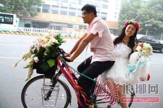 其实,这次单车婚礼并不是这对新人的心血来潮,而是他们心愿已久。“单车见证了我们的爱情,我更要把它永远铭刻到我的生命里。”新娘王茜如是说。