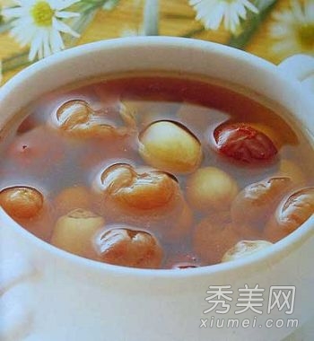 材料:桂圆肉100克,菠萝肉200克,红枣100克,砂糖适量,精盐少许。