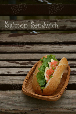 3.然后,在面包片、黄瓜、奶酪、虾上分别沾一点沙拉酱,叠在一起,装盘。