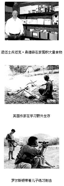 亚利桑那州的蒂姆?罗尔斯顿就是这些人中的一员。他的车库塞满了食物、纯净水、武器以及一辆拖车,以便一旦灾难发生时,能保障开车逃生。他储备的鸡肉罐头可以保存15年。