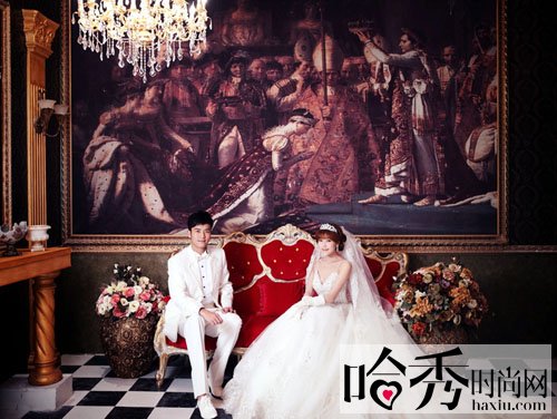 想象一下,在寂静的大厅里,水晶灯灼灼发亮,墙壁上满是中世纪名人的壁画,这世界仿佛只有你和我一般,低调的奢华下,一切是那么的耀眼动人。2013最新个性婚纱照低调的奢华,让你们享受复古的婚纱照风格。