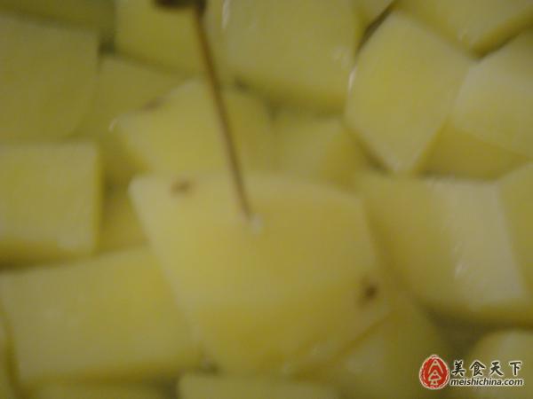step 3 :煮大约20分钟,用竹签插入试一下。如果可以轻松插入,表示土豆已经熟了