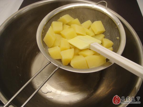 step 4:将土豆过滤出后,架在一个脸盆上