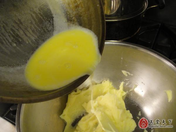 step 7 :将烧开的黄油牛奶与土豆泥拌匀,并放盐,胡椒调味即可