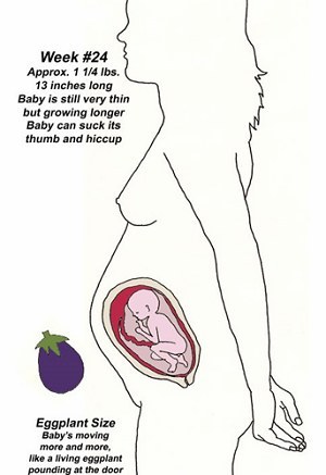 孕六月:胎儿大小像茄子,宝宝开始吮吸拇指和打嗝