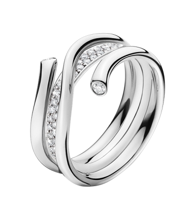 花样式戒指中最经典的便是延伸式戒指,是指由多个指环叠合而成的婚戒。作为结婚戒指便是由3个指环构成的戒指,这3个指环可以是3种颜色的组合。
