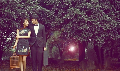 个性婚纱照除了创意也讲究意境。人们心中有着怀旧的情愫,很多人都希望能感受一下旧上海的万种风情。今天为大家介绍的这组个性婚纱照中,就以旧上海为元素拍摄出民国复古的感觉。旗袍是一种传统服饰,更是一种彰显S型好身材的魅力新娘。