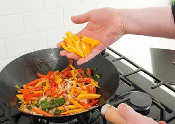 于仁文建议,在炒菜时最好不要加水,直接把切好的菜放在锅里烹炒,用自身的水分来做热传递,这样做的菜才好吃。如果遇到不易熟的菜,可先焯一下,这样菜都七八分熟了,再炒就不易糊锅了。