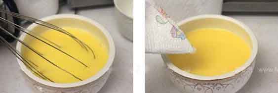 1.鸡蛋和水(鸡蛋:水=1:2,烧开过的温水+盐)用搅拌棒搅匀,不要残留块状蛋白或者蛋黄