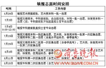 省招考院有关专家介绍,今年,我省调整了高考填报志愿时间,艺术类本科提前批及艺术类本科一批一志愿6月29日填报;文理类本、专科提前批、自主招生批、本科一批一志愿由往年的6月28日、29日填报,推迟至7月3日填报。