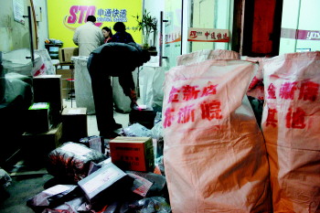 临沂网店卖家大量发货的同时,买家的网上购物量也大得惊人。临沂申通快递客服经理王艳金介绍,11月份以来,派件量和取件量都比平时增长了两倍多。
