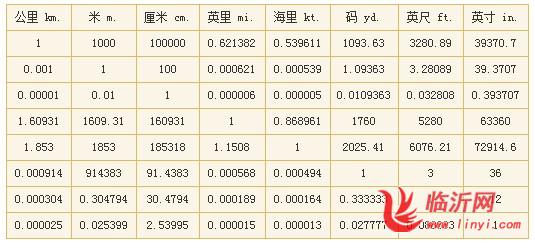 1.长度换算表