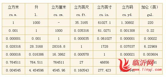 4.容积换算表