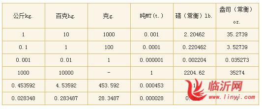 3.重量换算表