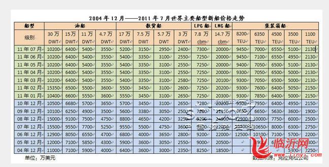 2004年12月——2011年7月世界主要船型新船价格走势